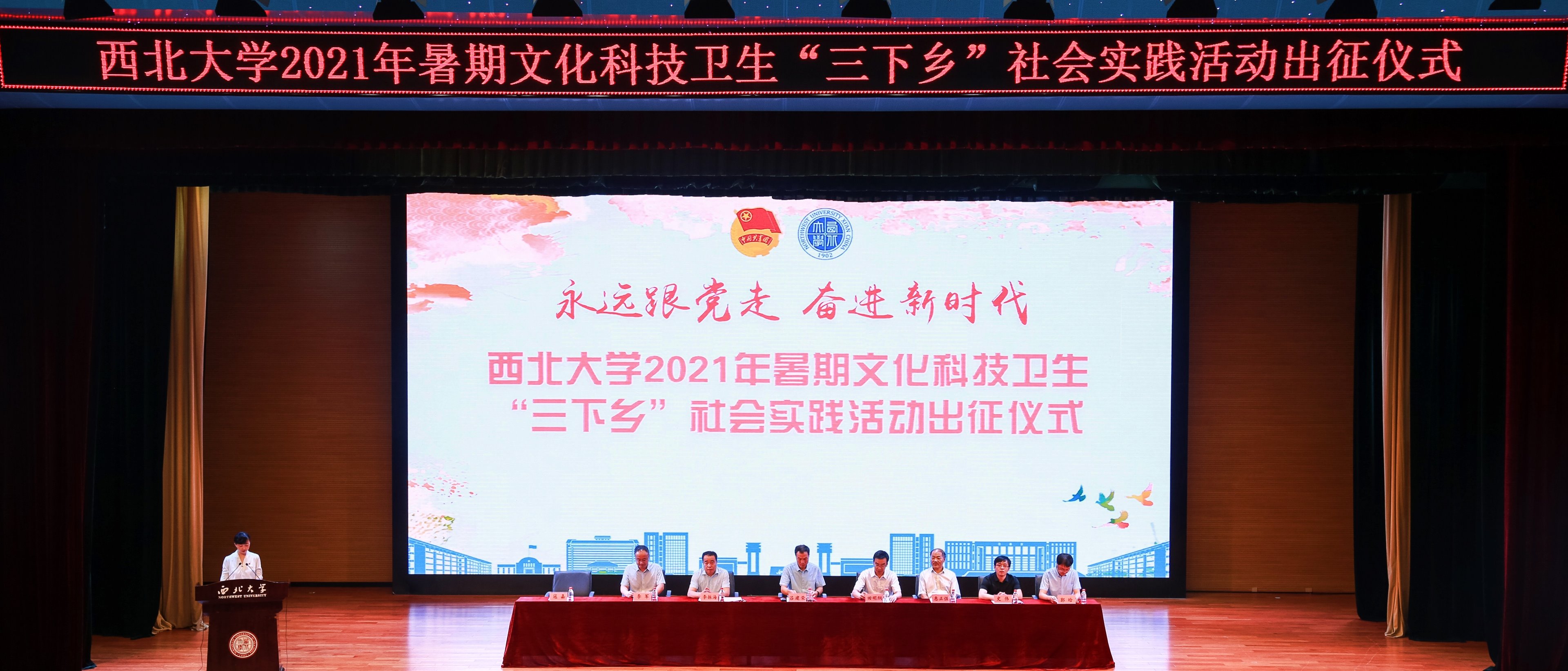 7月16日,伟德官网“永远跟党走 奋进新时代”2021年暑期“三下乡”社会实践活动出征仪式在长安校区举行。校党委副书记吕建荣,校党委常委、宣传部部长田明纲,组织部、教工部、学工部、研工部、教务处负责人和各院(系)学生工作负责人、团委书记、专职团干部,暑期社会实践各团队带队老师、学生代表300余人参加了出征仪式。仪式由校团委负责人主持。伴随着雄壮的国歌声,大会拉开了帷幕。会上,田明纲宣读了表彰文件,与会领导为获...