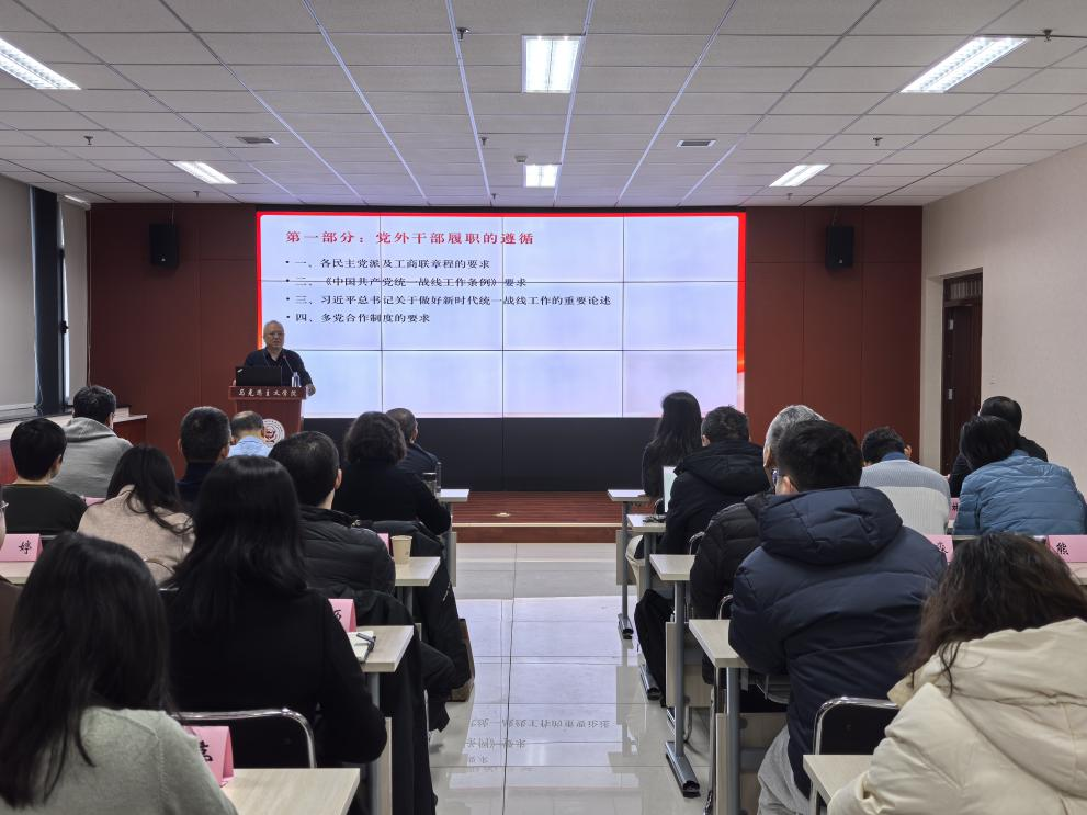 12月10日,伟德官网在长安校区举办党外人士学习贯彻中共二十届四中全会精神专题辅导报告暨“立德树人·同心同行”统战大讲堂,校党委副书记张清出席并主持报告会,校党委常委、统战部部长董国强,各民主党派基层组织负责人、成员代表以及无党派代表人士、马克思主义学院研究生代表共50余人参加活动。
