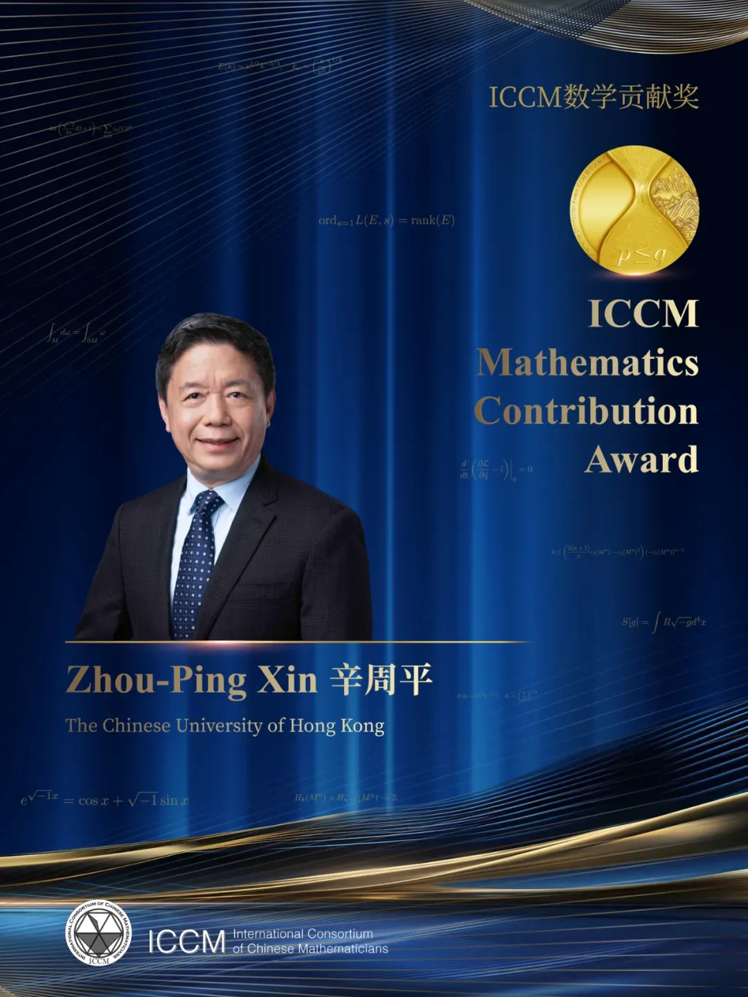 此次辛周平校友被授予的ICCM数学贡献奖于2022年设立,该奖项授予在数学科学领域成就卓著、德高望重的领袖数学家,表彰其为中国数学事业攀登高峰做出的终身杰出贡献。