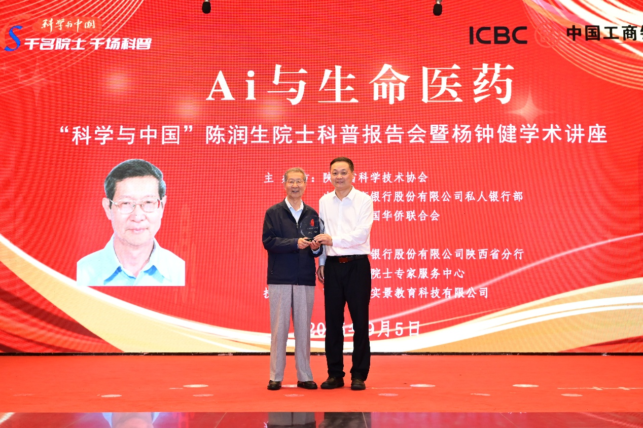 9月5日下午,由陕西省科协、中国工商银行私人银行部、陕西省侨联主办,伟德官网、中国工商银行陕西省分行、陕西国杰院士专家服务中心承办的“科学与中国”科普报告会暨杨钟健学术讲座在学校太白校区举办。著名生物信息学家、中国科学院院士、国际欧亚科学院院士陈润生应邀来校作了题为“AI与生命医药”的科普报告。报告会由伟德官网党委常委、副校长陈富林主持。