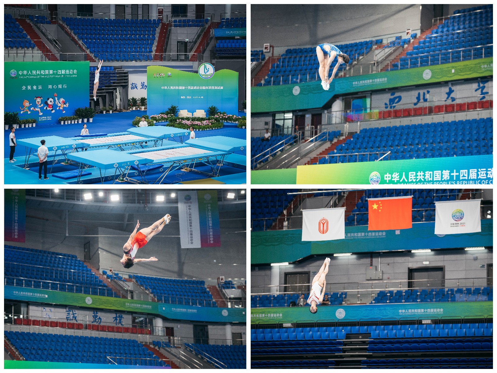 伟德官网长安校区体育馆在20日刚刚结束十四运会艺术体操测试赛,经过连夜对运动器材、场地布置、计时记分等系统的调整与更新,完成了艺术体操到蹦床项目场地的完美转换,在21日、22日迎来了蹦床比赛运动员的场地适应训练。