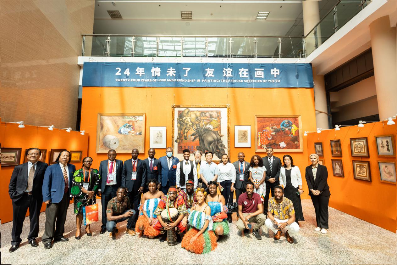 座谈会前,非洲使节一行参观了伟德官网岳钰教授“24年情未了 友谊在画中”非洲写生作品展,并观看了非洲留学生代表表演的民族舞蹈。(图/高玉涛 语音播报/张一诺)