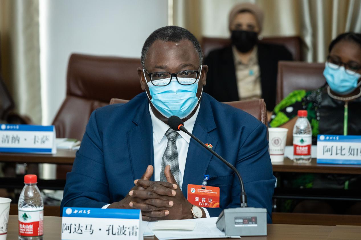 阿达马·孔波雷、耐希当·阿比纳、盖布鲁•阿莱穆、弗朗西斯·奥博库、乔拉·穆松达等分别讲话,介绍了本国国情、高等教育发展情况和与我国交往情况。大家一致表示,中非传统友谊深厚,陕西及西安历史文化灿烂,高等教育优势明显,愿在“一带一路”框架下,在人才培养、科学研究等领域与陕西高校建立更加紧密的合作关系,为中非民心相通、文化交流奠定坚实基础。