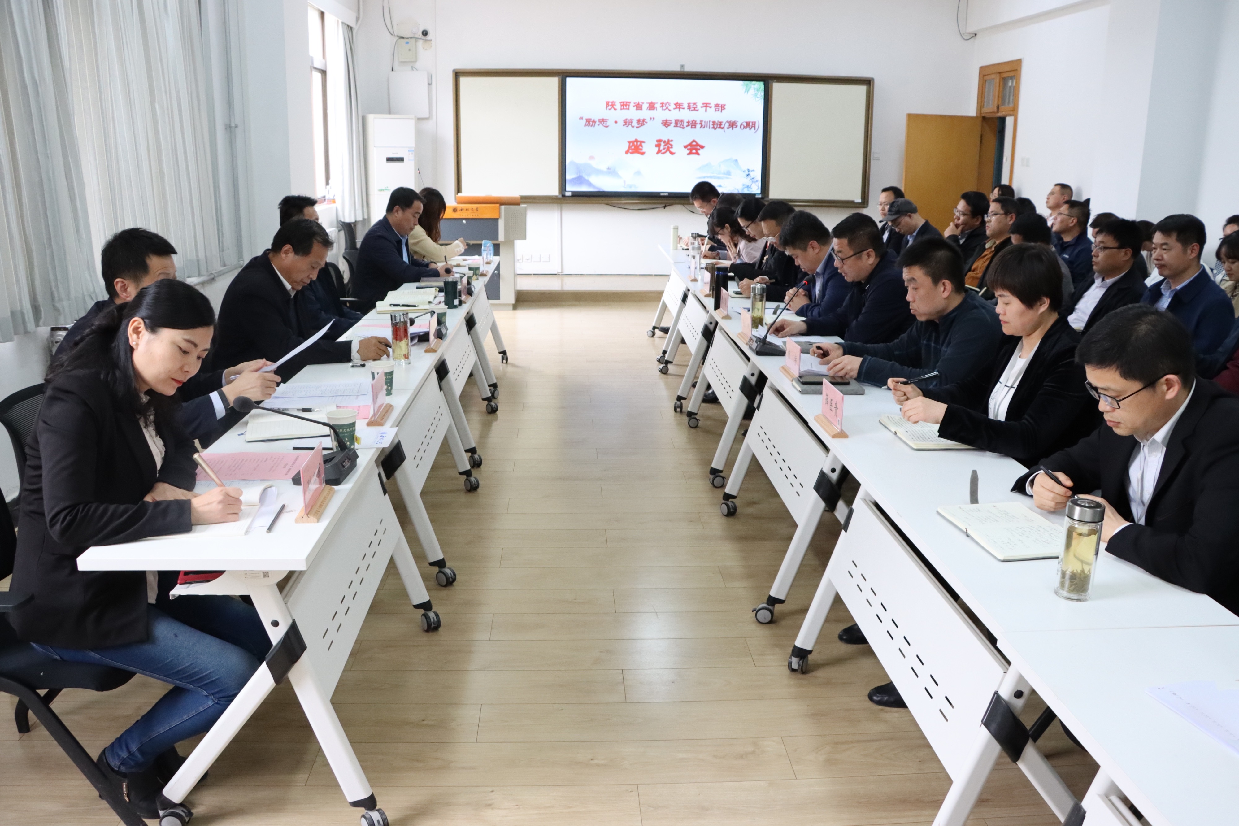 4月14日下午,陕西省高校年轻干部“励志·筑梦”专题培训班(第六期)座谈会在伟德官网举行。陕西省委干教办副主任、省委组织部一级巡视员郭文超,校党委副书记、中华文化干部学院院长赵作纽出席座谈会。第六期培训班的四十余名学员参加了会议。校党委组织部、陕西省干部教育培训伟德国际1946源于英国基地相关负责人主持会议。
