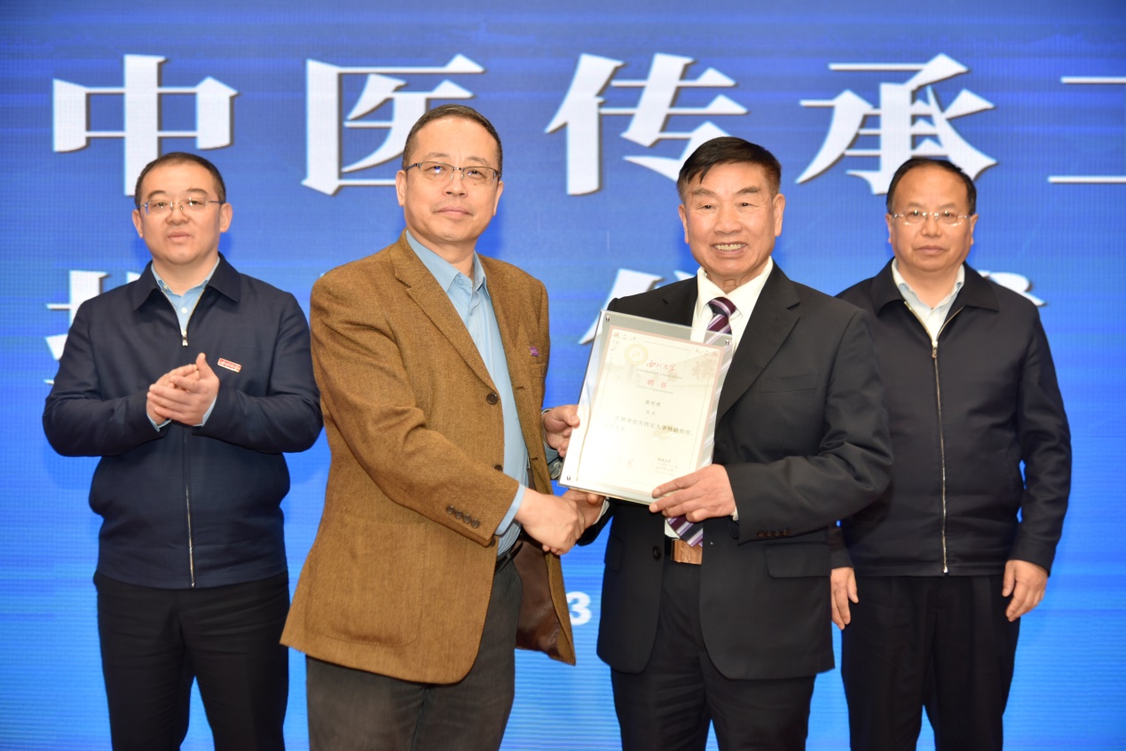 校党委常委、副校长常江,铜川市政府副市长李荣共同为黄传贵中医传承工作室揭牌