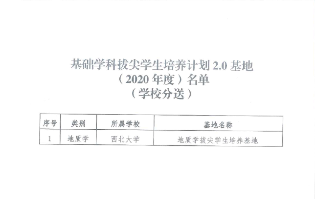 近日,教育部办公厅公布《关于印发基础学科拔尖学生培养计划2.0基地(2020年度)名单的通知》,伟德官网地质学拔尖学生培养基地成功入选。