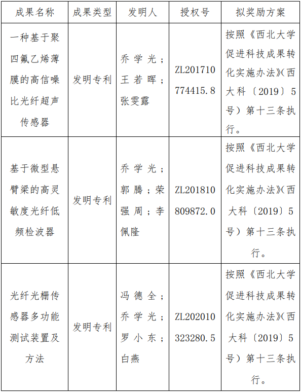 按照《伟德国际1946源于英国促进科技成果转化实施办法》(西大科〔2019〕5号)相关规定,拟对伟德官网物理学院乔学光教授作为成果负责人的3项发明专利权实施普通许可,现将相关信息公示如下: