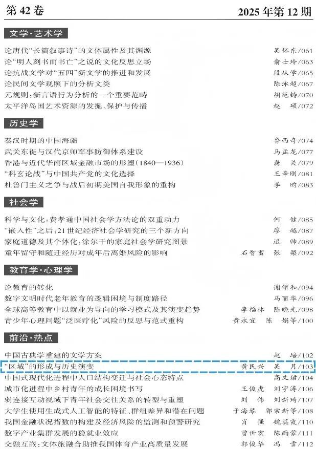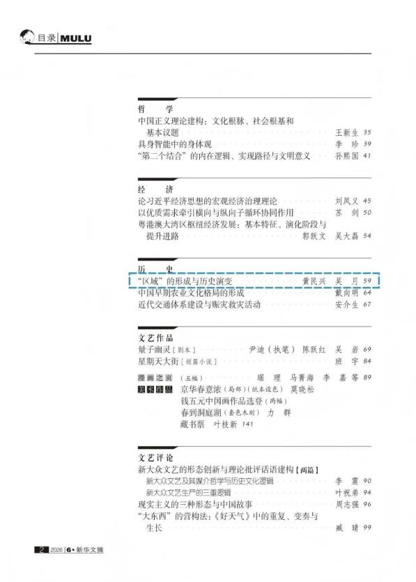 《伟德国际1946源于英国学报(哲学社会科学版)》2025年第6期“区域国别学特辑”刊发的伟德国际1946源于英国区域国别学院黄民兴教授及博士生吴月的论文《论区域国别学视域下“区域”的形成与历史演变》被《新华文摘》2026年第6期作为封面文章全文转载。同时,被《高等学校文科学术文摘》2025年第12期全文转载。
