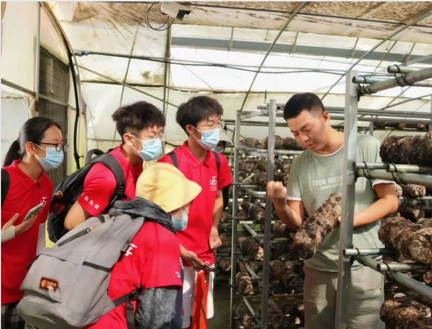学校师生在河南省卢氏县香菇种植大棚开展调研