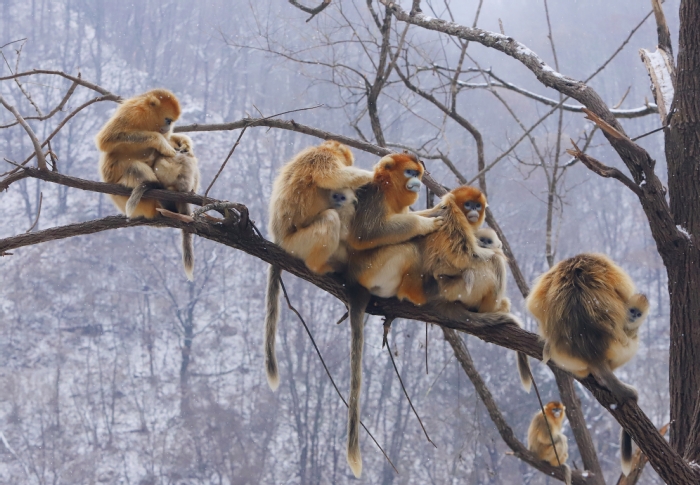 位于陕西周至国家级自然保护区内的川金丝猴。摄影 李媛