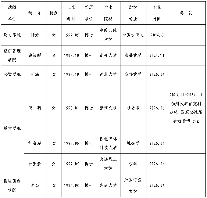 现对拟聘人选进行公示。各单位或个人如对上述人选存有疑问,可在2026年1月15日前以书面形式向人力资源部反映。反映材料须实名提交,以便我部核实并反馈,我们将严格保密。