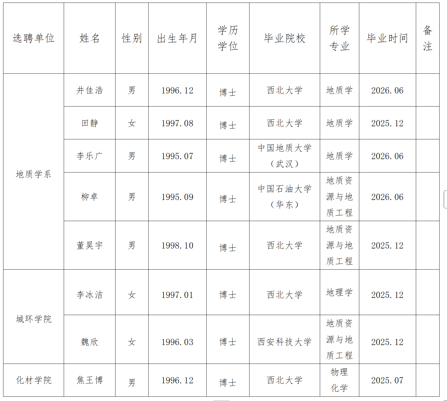 注:1.公示期结束后,如无异议,已取得学位证、毕业证的入选人员须在公示期满后1个月内签订《紫藤学者研究员岗位聘用合同》并办理博士后进站手续;