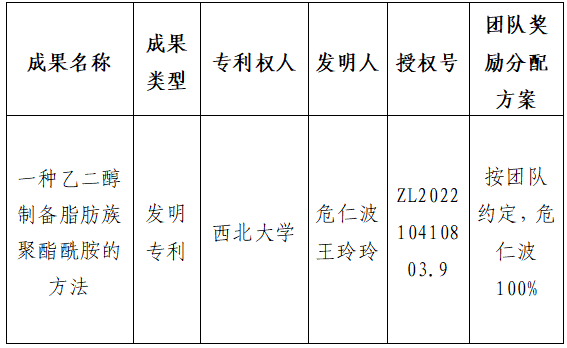 按照《伟德国际1946源于英国促进科技成果转化实施办法》(西大科〔2019〕5号)相关规定,拟对我校化工学院危仁波教授作为成果负责人的1项发明专利权实施转化,现将相关信息公示如下: