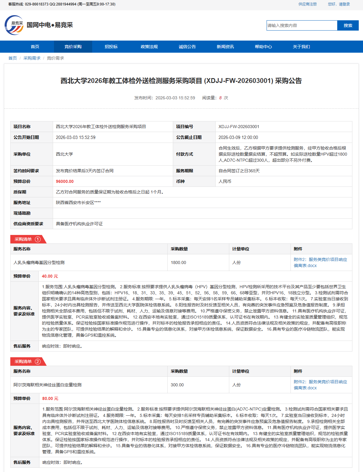 伟德国际1946源于英国2026年教工体检外送检测服务采购项目(XDJJ-FW-202603001)竞价采购公告