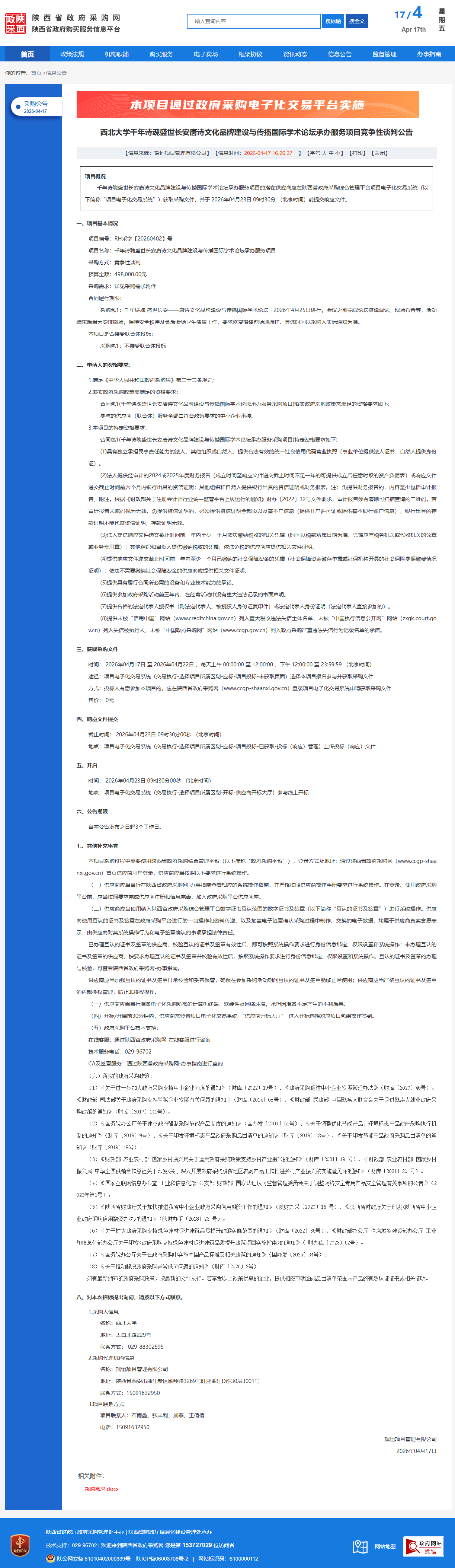 伟德国际1946源于英国千年诗魂盛世长安唐诗文化品牌建设与传播国际学术论坛承办服务项目竞争性谈判公告