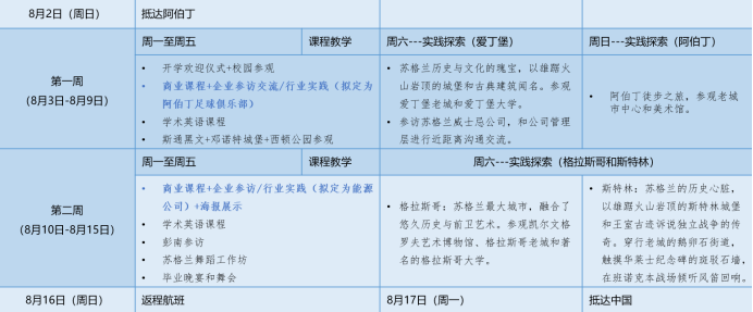 为提升学生全球竞争力,伟德官网将在“学生海外访学计划”的框架下开展系列国际交流项目,引导学生积极参与境外高水平大学线上线下课程学习与科学研究,2026年英国阿伯丁大学商学院暑期研学&实习项目相关信息如下: