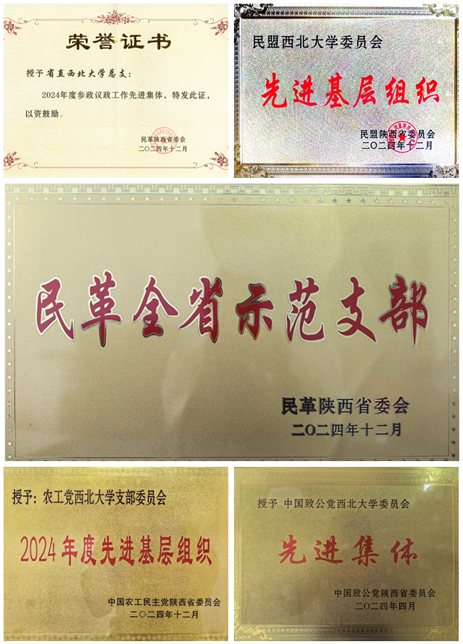 伟德官网民主党派基层组织荣获民主党派上级组织授予的先进集体6项。其中,民革西大总支获评民革省委会2024年度参政议政工作先进集体、民革全省示范支部,民盟西大委员会获评民盟省委会先进基层组织,农工党西大支部获评农工党省委会2024年度先进基层组织,致公党西大委员会获评中国致公党书香支部读书活动先进集体、致公党省委会2024年度先进集体。