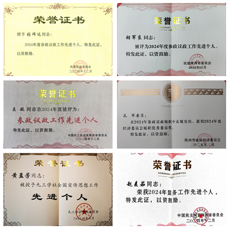 统一战线成员荣获民主党派、侨联上级组织授予的先进个人19人次。其中,民革西大总支主委张炜达荣获民革省委会“参政议政工作先进个人”。民盟西大委员会委员赵麦茹、李玮及盟员冯宏剑荣获民盟省委会“盟务工作先进个人”。民建西大基层委员会主委胡军良荣获民建省委会“参政议政工作先进个人”。民进西大总支副主委曹蓉荣获民进省委会“先进教育工作者”称号,组织委员周焱荣获民进省委会“开明文化青年骨干”奖,会员岳钰荣获民进省委会“开明文化杰出人物”。农工党西大支部主委吴航荣获农工省委会“参政议政工作先进个人”。致公党西大委员会主委孔军荣获省政协经济委员会“优秀履职委员”称号,党员朱晓丽荣获2024年“全国三八红旗手”称号,王海荣获致公党省委会“先进党员”,王颖荣获“参政议政工作先进党员”,朱晓丽、王小刚、赵晓炜荣获“优秀党员”。九三学社西大委员会副主委黄孟芳荣获“2023-2024年九三学社全国宣传思想工作先进个人”。西大侨联秘书长邵煜荣获“陕西省侨联系统先进工作者”,会员韩英锋荣获“陕西省归侨侨眷先进个人”。