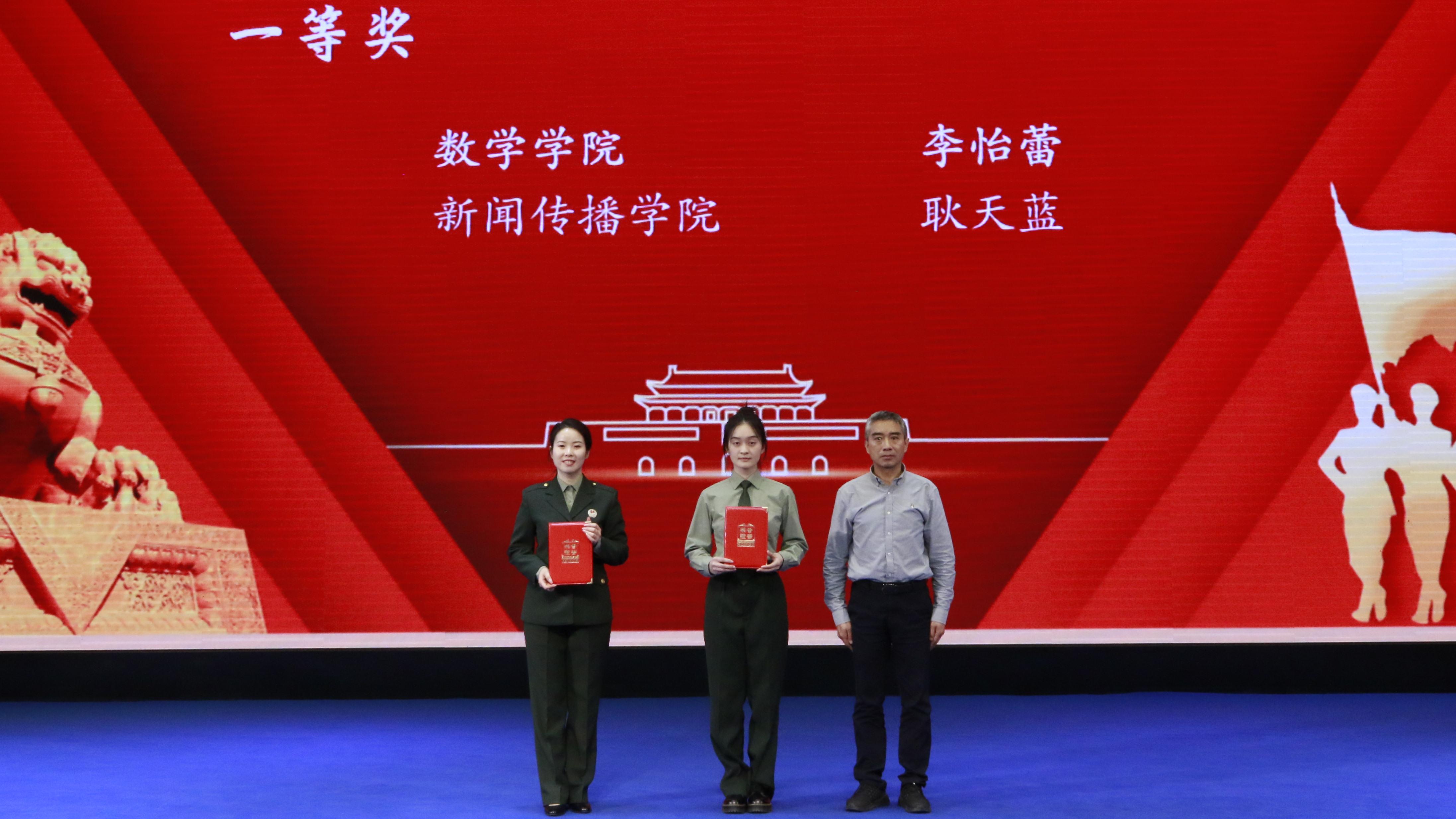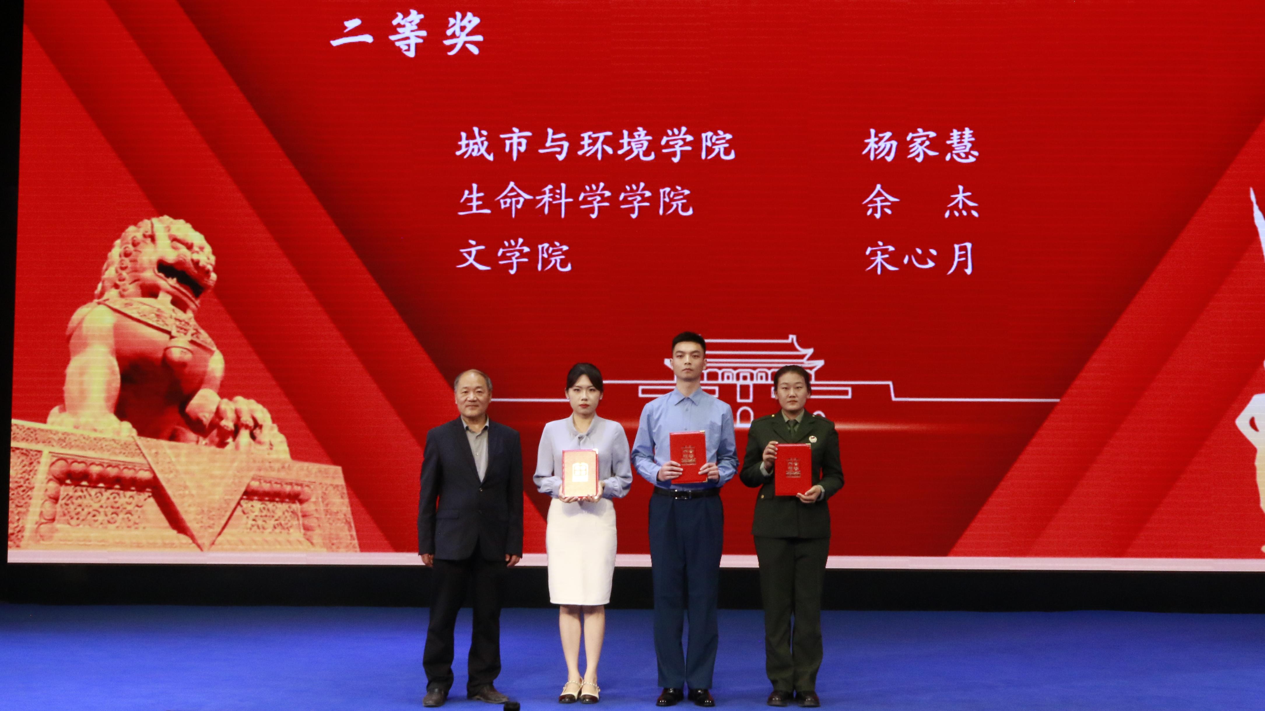经过激烈比拼,最终,新闻传播学院耿天蓝、数学学院李怡蕾获一等奖;城市与环境学院杨家慧、生命科学学院余杰、文学院宋心月获二等奖;公共管理学院刘如霞、食品科学与工程学院王子怡、经济管理学院王煜彤、艺术学院储丽丽、化工学院李博丹获三等奖;新闻传播学院、数学学院、生命科学学院、化工学院、食品科学与工程学院获优秀组织奖。校领导和相关职能部门负责人为获奖院(系)和个人颁奖。