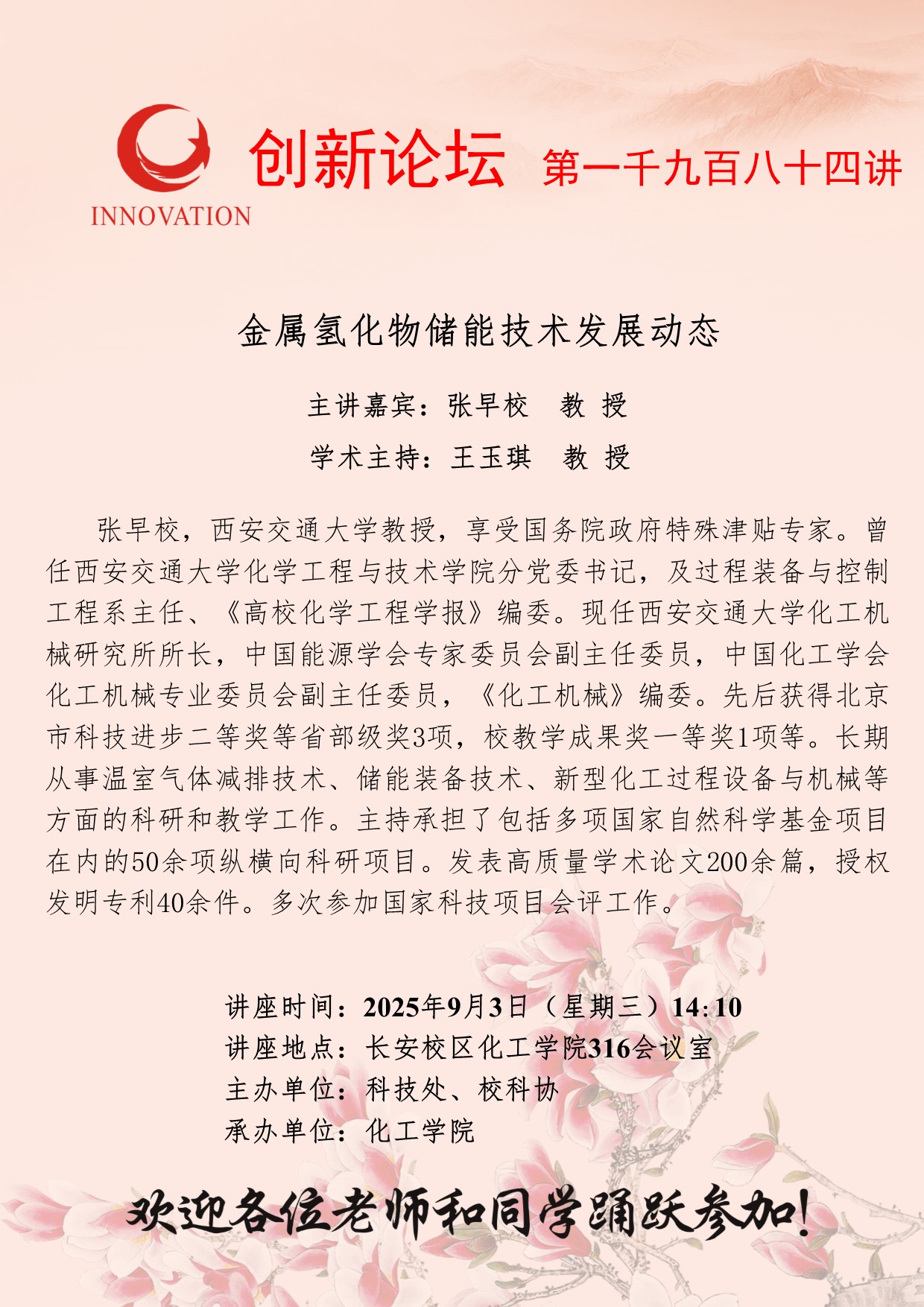 张早校 教授 伟德国际1946源于英国创新论坛第一千九百八十四讲:金属氢化物储能技术发展动态 讲座时间 2025年9月3日(星期三)14:10 讲座地点 长安校区化工学院316会议室 讲座人介绍 张早校 教授 讲座内容