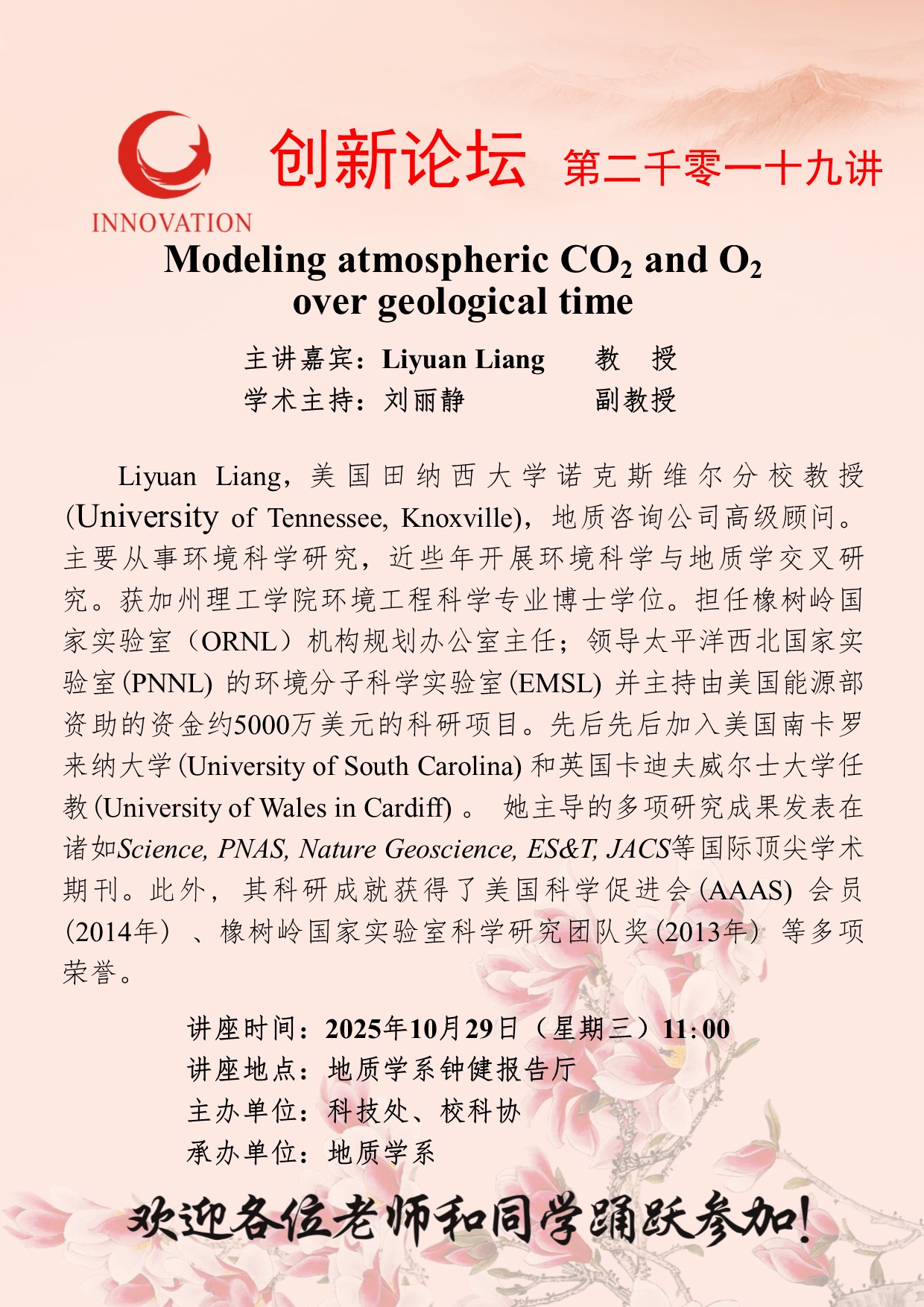 Liyuan Liang 教授 伟德国际1946源于英国创新论坛第二千零一十九讲:Oxygenation and marine microbial carbonates: The long history 讲座时间 2025年10月29日(星期三)11:00 讲座地点 地质学系钟健报告厅 讲座人介绍 Liyuan Liang 教授 讲座内容
