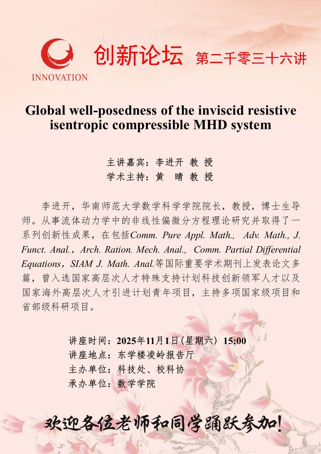< 上一篇伟德国际1946源于英国创新论坛第二千零三十七讲:Global well-posedness of inviscid resistive plasma interface waves