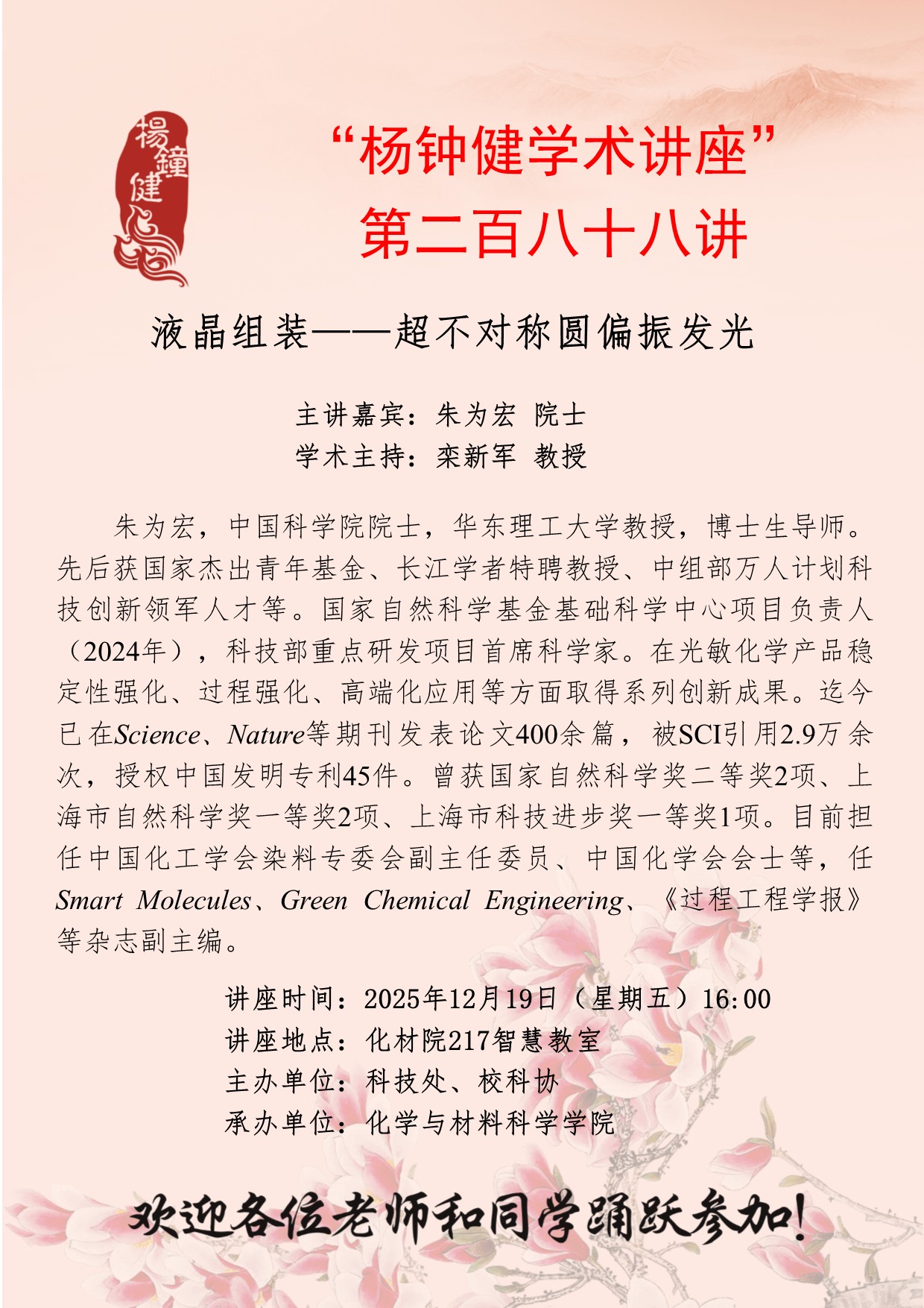 “杨钟健学术讲座”第二百八十八讲:液晶组装——超不对称圆偏振发光