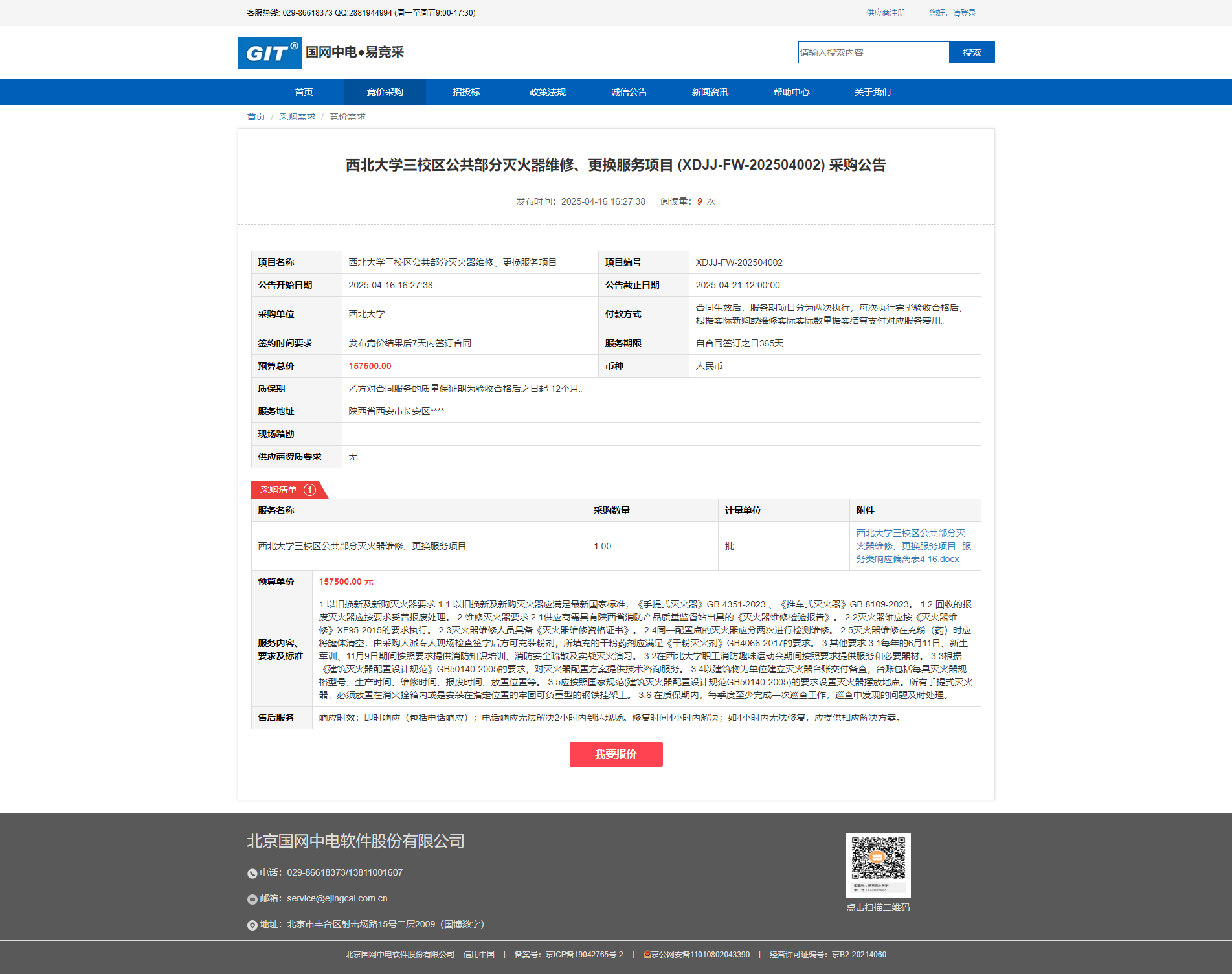 伟德国际1946源于英国三校区公共部分灭火器维修、更换服务项目 (XDJJ-FW-202504002) 采购公告