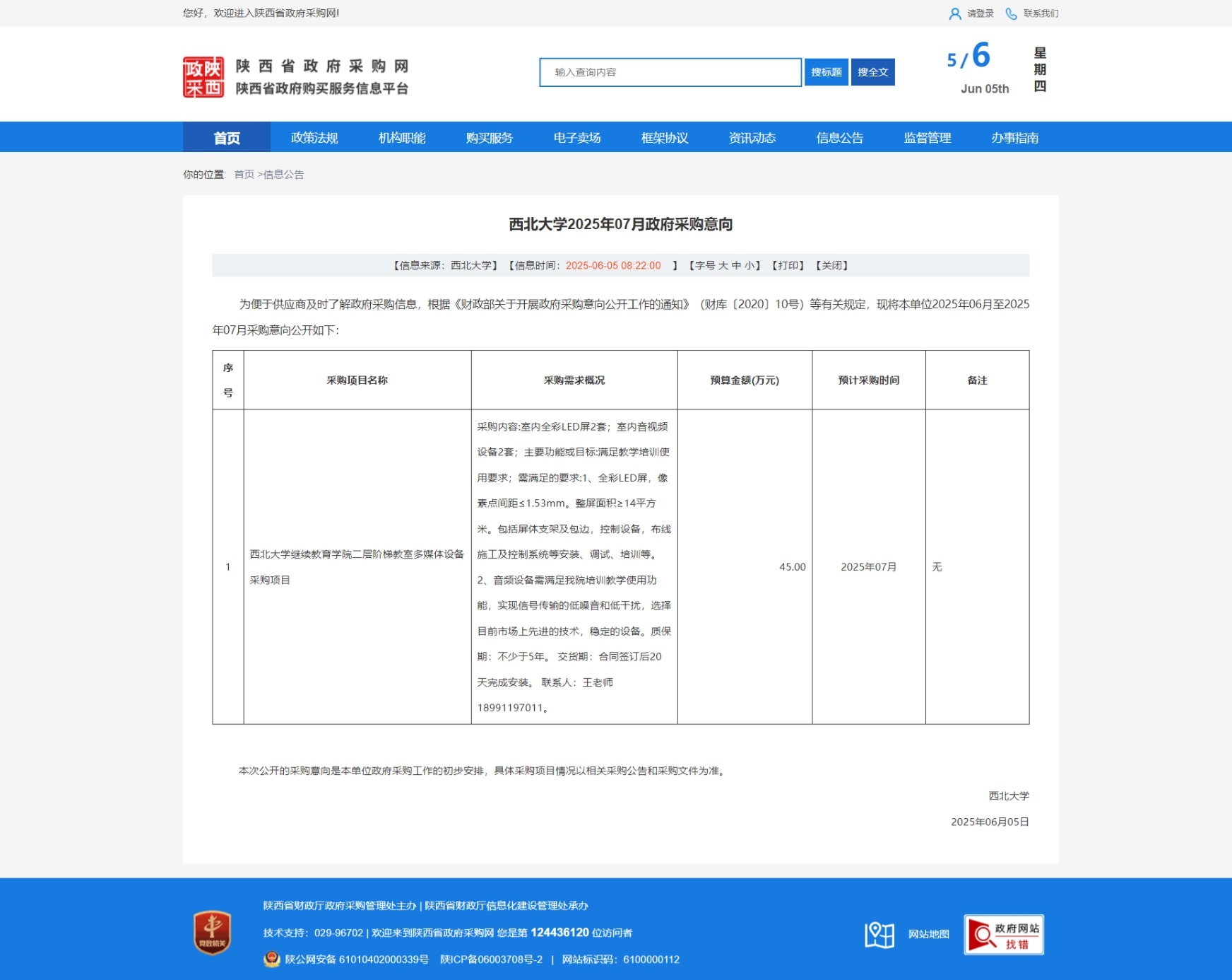 伟德国际1946源于英国2025年07月政府采购意向 作者: 编辑:采购与招标办公室 时间:2025-06-05 原公告链接:https://www.ccgp-shaanxi.gov.cn/freecms/site/shaanxi/ggxx/info/2025/8a69c8d196ce440a01973d667fcf58b5.html?noticeType=59¬iceId=0a572344-41a5-11f0-8063-08c0eb20c666