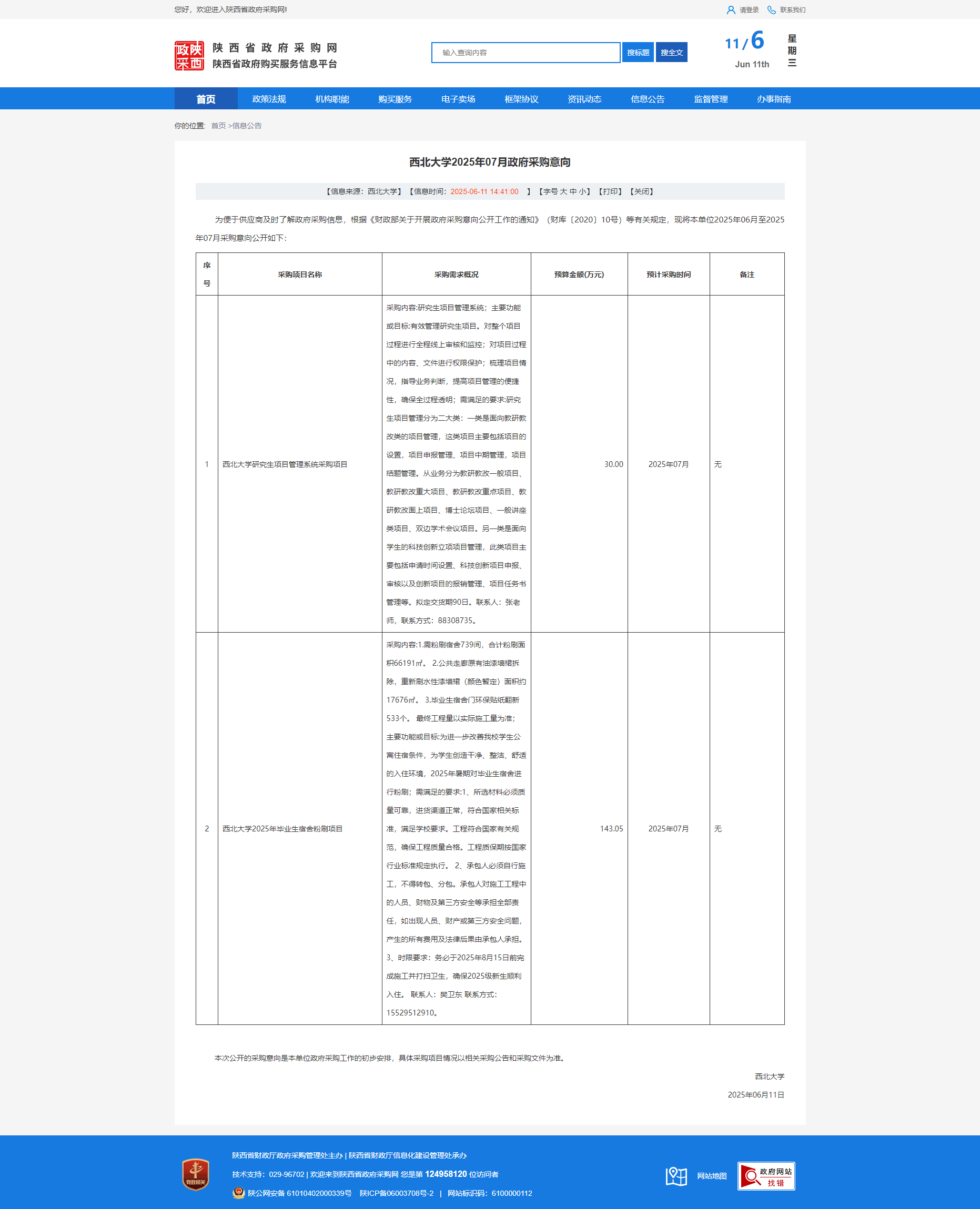 伟德国际1946源于英国2025年07月政府采购意向