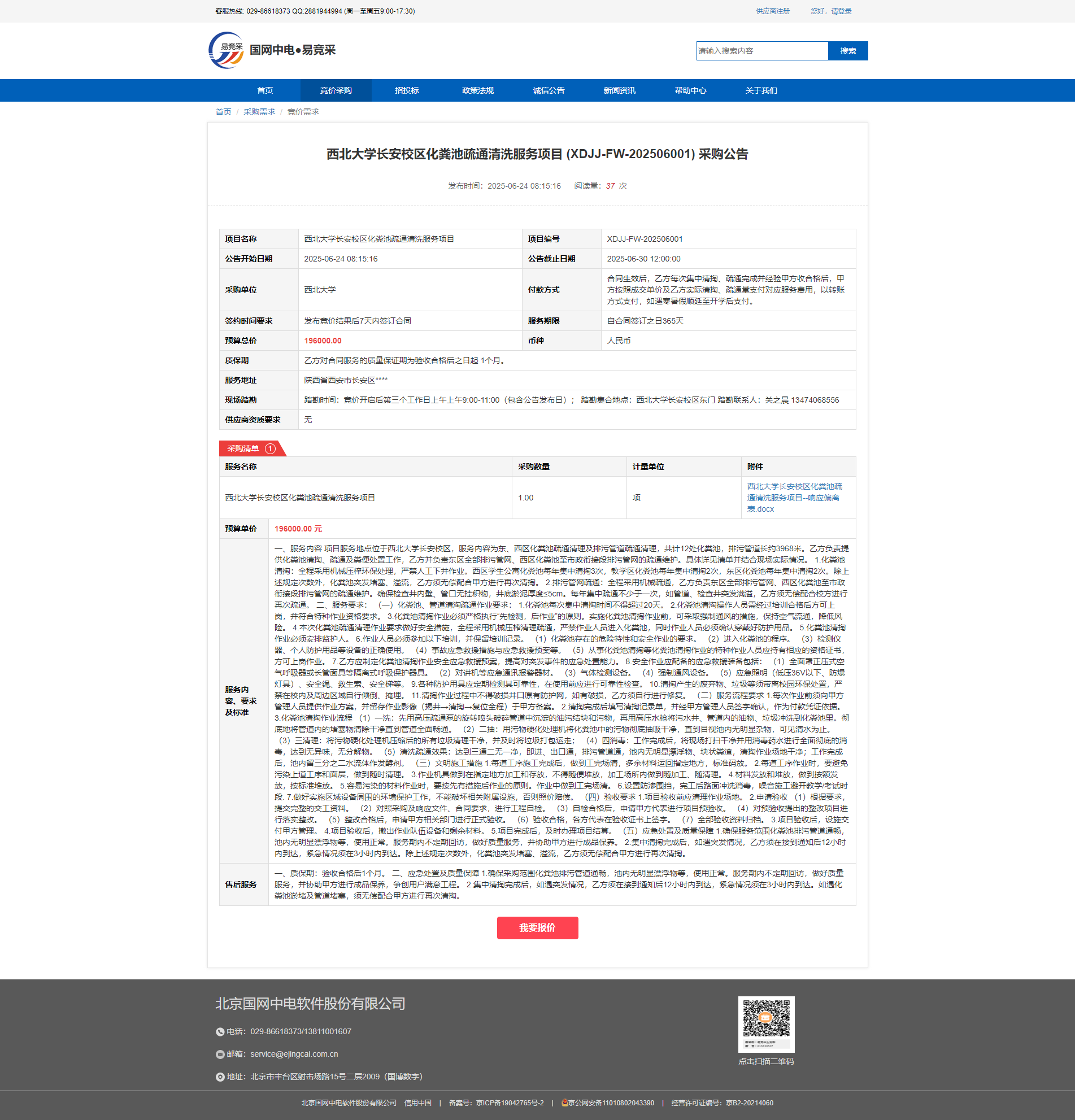 伟德国际1946源于英国长安校区化粪池疏通清洗服务项目 (XDJJ-FW-202506001) 采购公告