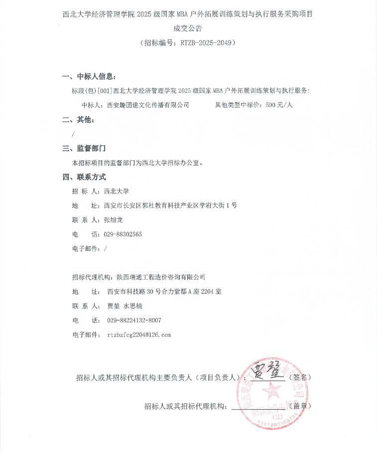 伟德国际1946源于英国经济管理学院2025级国家MBA户外拓展训练策划与执行服务采购项目成交公告