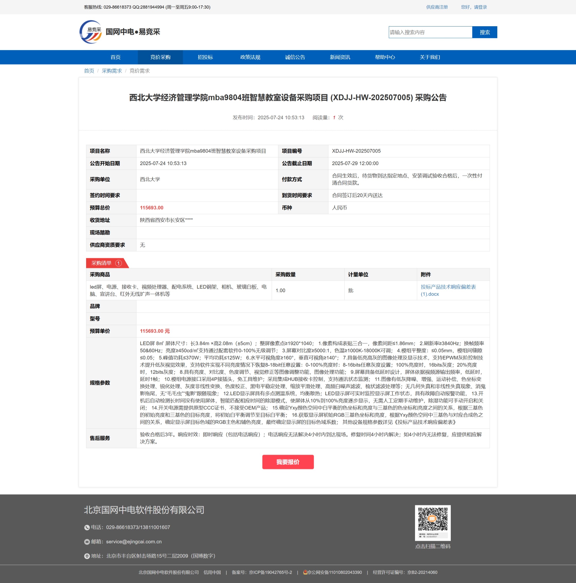 伟德国际1946源于英国经济管理学院mba9804班智慧教室设备采购项目 (XDJJ-HW-202507005)竞价采购公告 作者: 编辑:薛利娟 时间:2025-07-24 原公告链接:https://www.ejingcai.com.cn/site/bidding/detail/19708