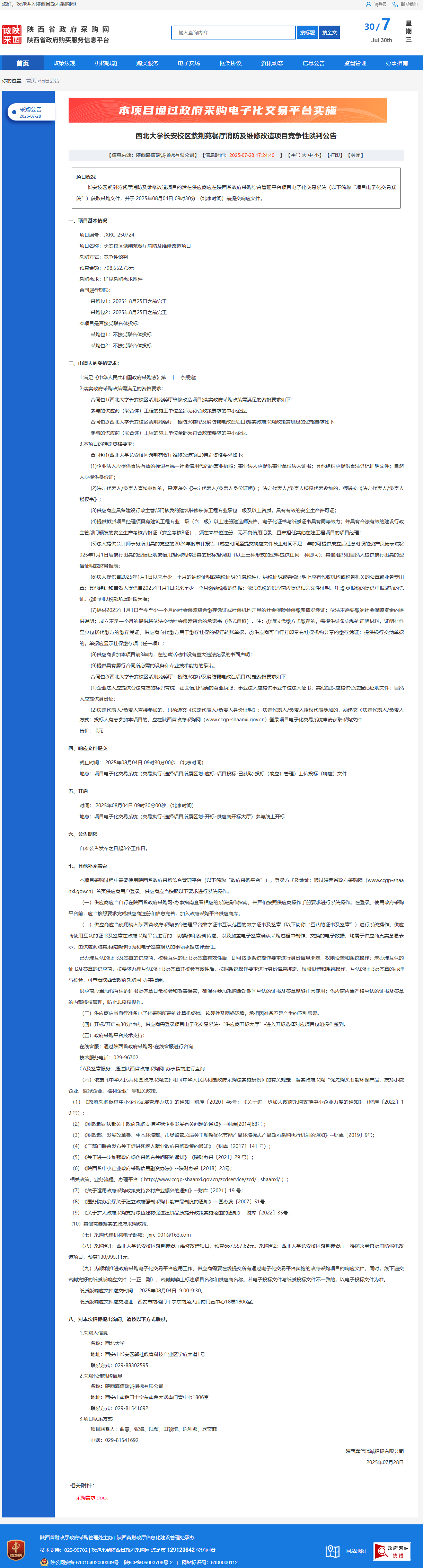 伟德国际1946源于英国长安校区紫荆苑餐厅消防及维修改造项目竞争性谈判公告