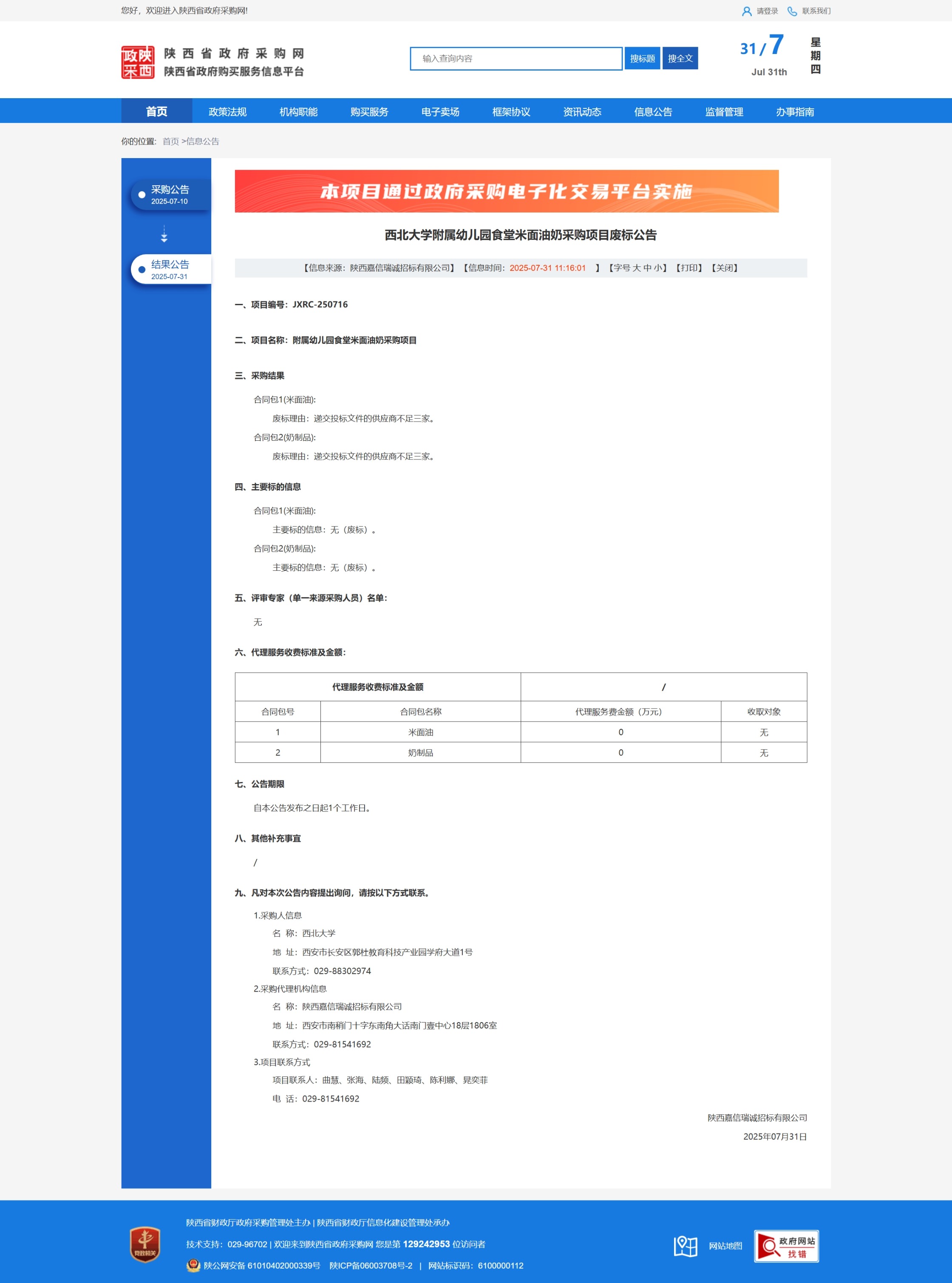 伟德国际1946源于英国附属幼儿园食堂米面油奶采购项目废标公告 作者: 编辑:采购与招标办公室 时间:2025-07-31 原公告链接:https://www.ccgp-shaanxi.gov.cn/freecms/site/shaanxi/ggxx/info/2025/8a69c0c7985e48f501985e6d02b81fb9.html?noticeType=001006¬iceId=b9835470-6dbe-11f0-8063-08c0eb20c666