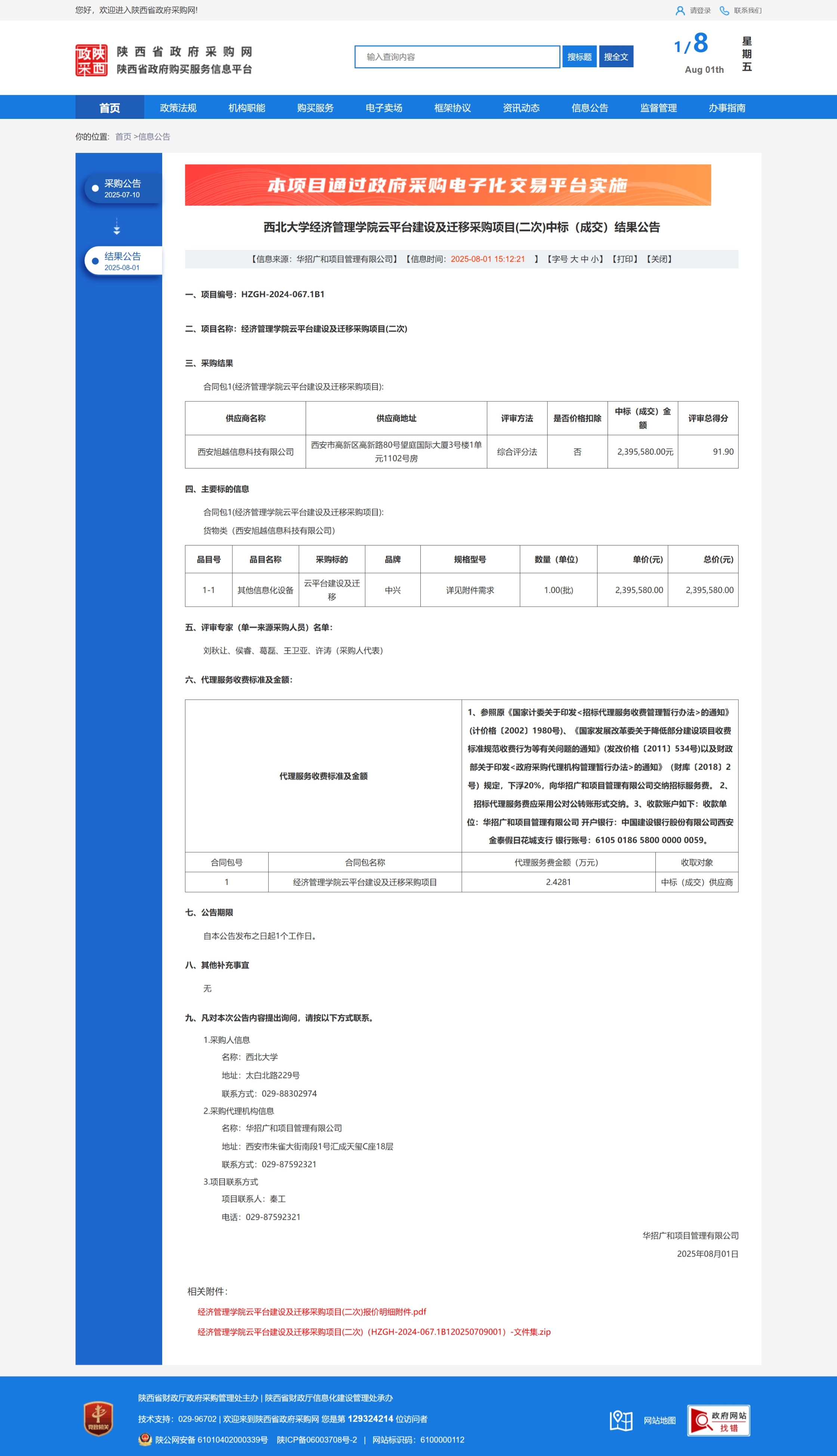 伟德国际1946源于英国经济管理学院云平台建设及迁移采购项目(二次)中标(成交)结果公告 作者: 编辑:采购与招标办公室 时间:2025-08-01 原公告链接:https://www.ccgp-shaanxi.gov.cn/freecms/site/shaanxi/ggxx/info/2025/8a69c6959860f2ce01986101532605f6.html?noticeType=001021¬iceId=e8cedee8-6ea8-11f0-8063-08c0eb20c666