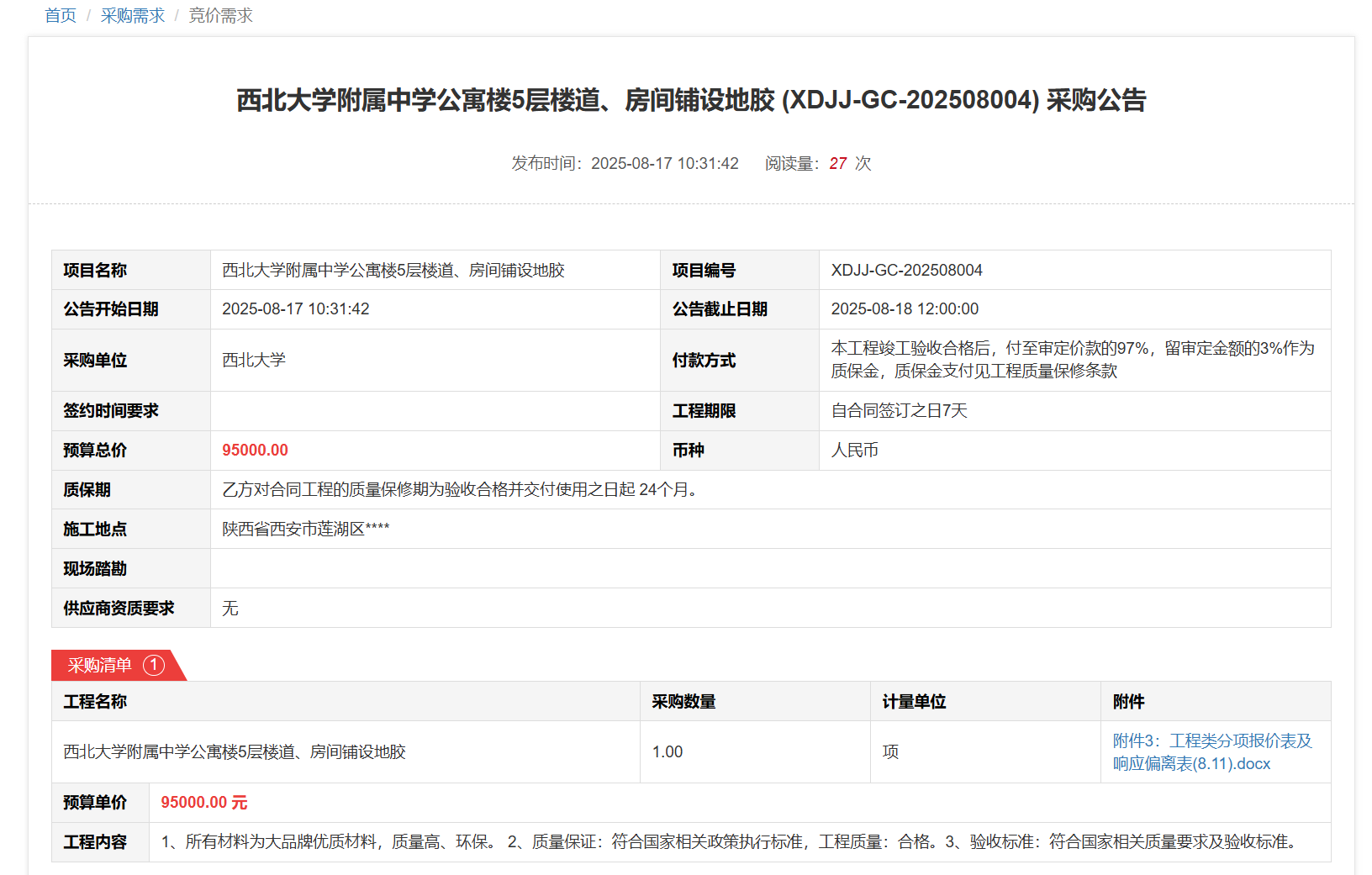 伟德国际1946源于英国太白校区科研楼公共区域、教学七号楼室内照明设施更换(XDJJ-GC-202508001)竞价结果公告