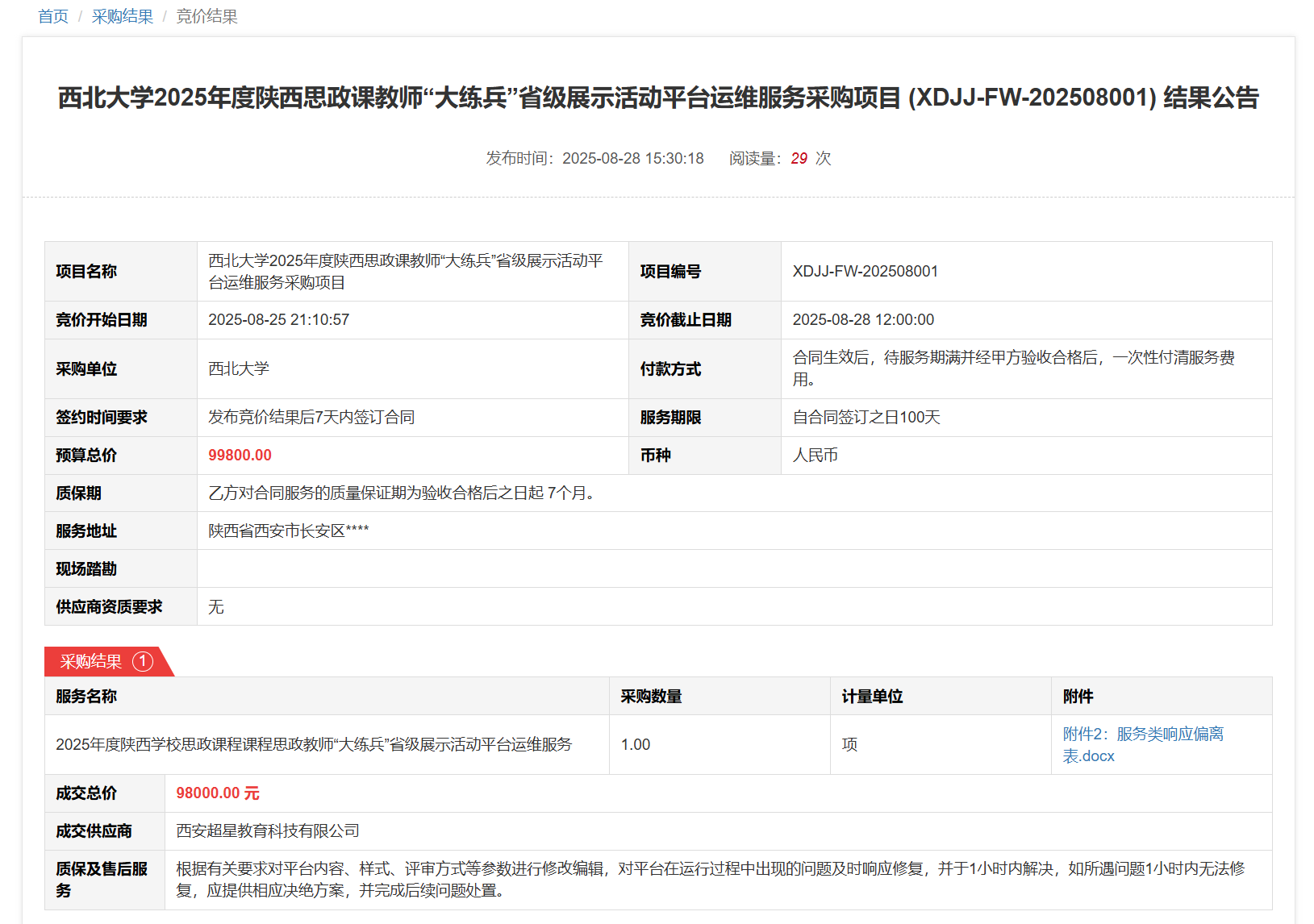 伟德国际1946源于英国2025年度陕西思政课教师“大练兵”省级展示活动平台运维服务采购项目(XDJJ-FW-202508001)竞价结果公告 作者:XDJJ-FW-202508001 编辑: 时间:2025-08-28 原公告链接