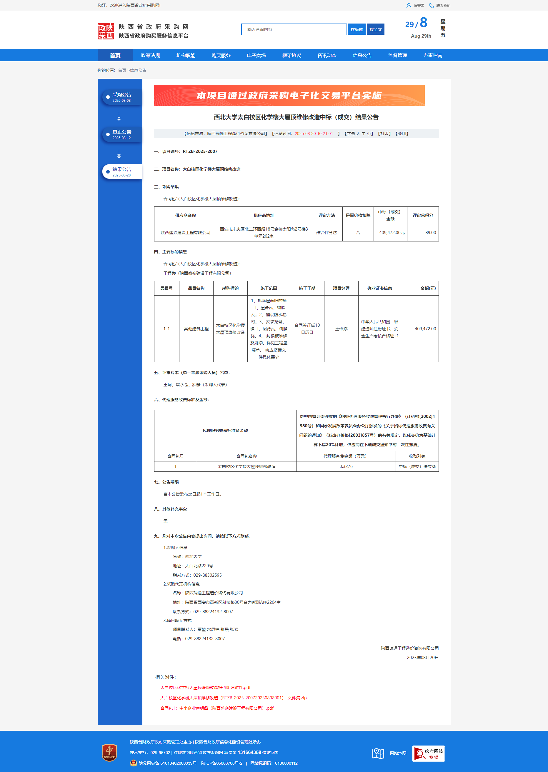 伟德国际1946源于英国太白校区化学楼大屋顶维修改造中标(成交)结果公告