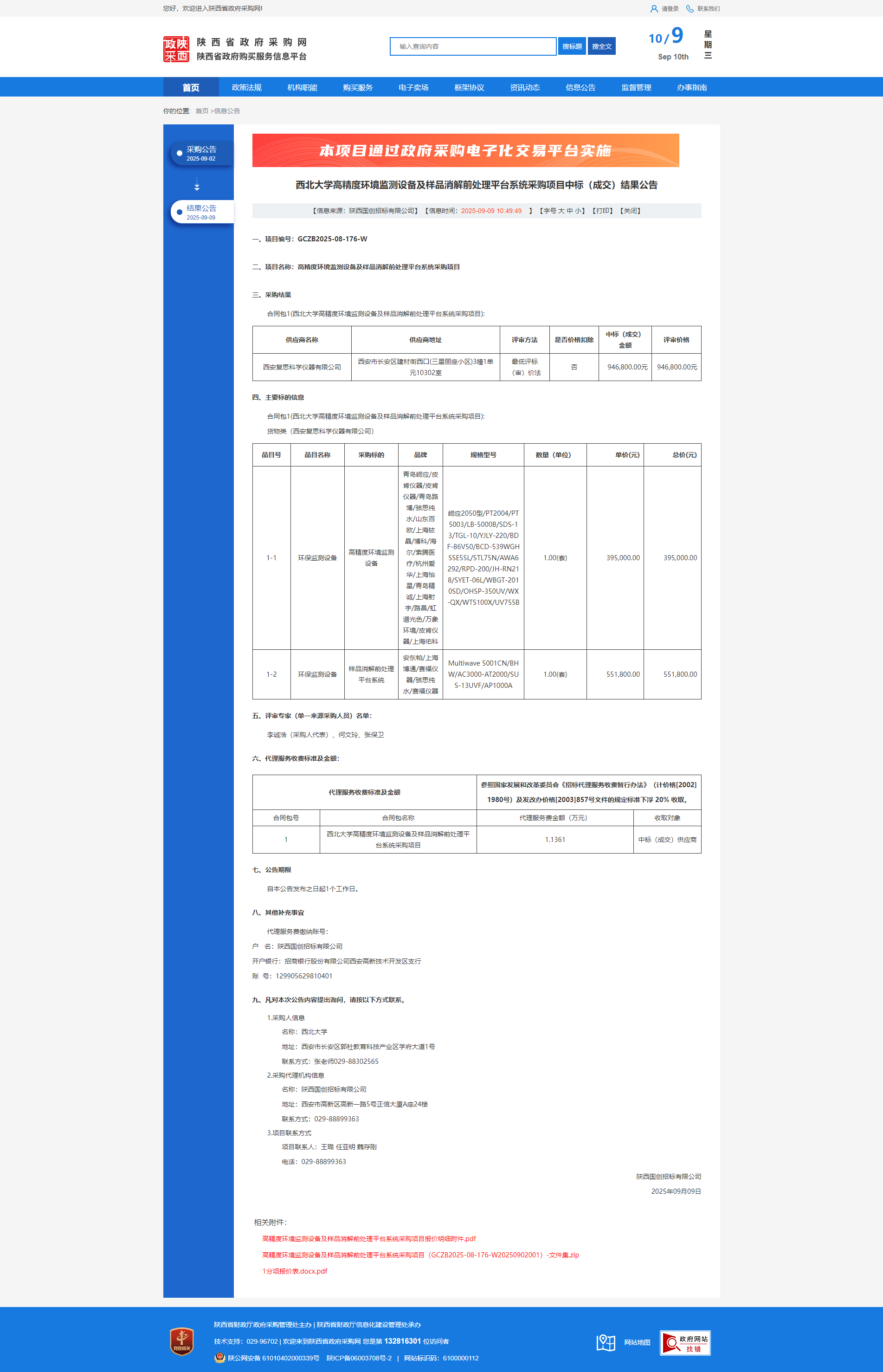 伟德国际1946源于英国高精度环境监测设备及样品消解前处理平台系统采购项目中标(成交)结果公告