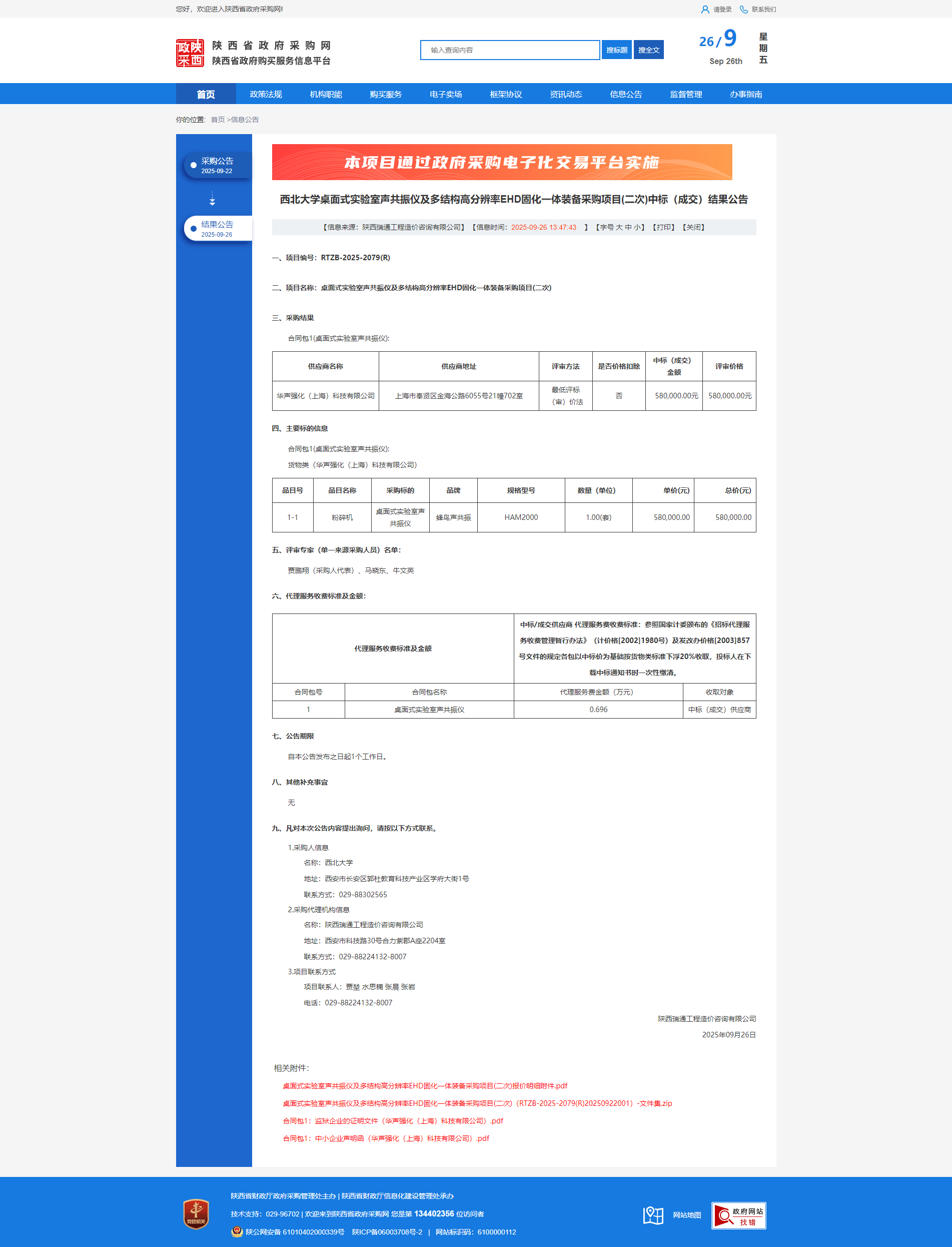 伟德国际1946源于英国桌面式实验室声共振仪及多结构高分辨率EHD固化一体装备采购项目(二次)中标(成交)结果公告