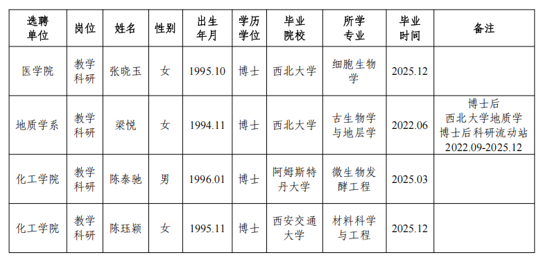 注:1.本人须在公示期满后1个月内签订就业协议(开具接收函),并提前准备伟德官网师资博士后入站材料(材料清单详见:https://rsc.nwu.edu.cn/bshgz/jczdjcl.htm);