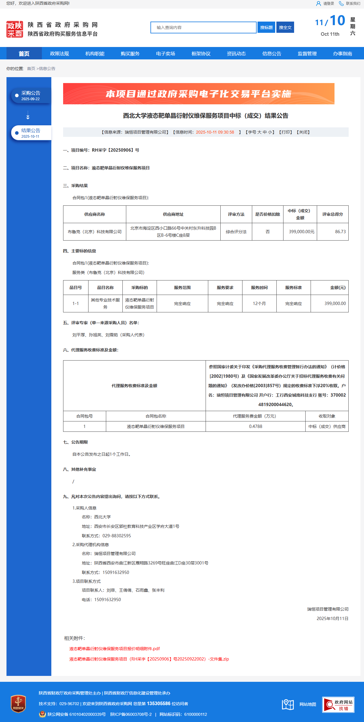 伟德国际1946源于英国液态靶单晶衍射仪维保服务项目中标(成交)结果公告
