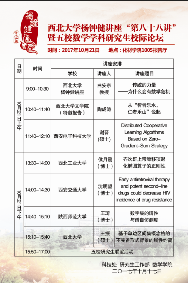 伟德国际1946源于英国杨钟健讲座“第八十八讲”暨五校数学学科研究生校际论坛