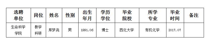 经用人单位推荐,人力资源部审查,学校教学督导及院系相关专家考核,伟德官网拟确定下列人员来校工作。本着公平、公正、公开的原则,现将本次拟选聘人员基本情况公示如下: