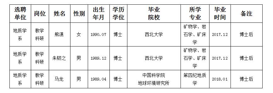 经用人单位及教学督导考核、学校研究,拟同意选聘下列人员来校工作,其聘任关系为A类人事代理。本着公平、公正、公开的原则,现将拟选聘人员基本情况公示如下: