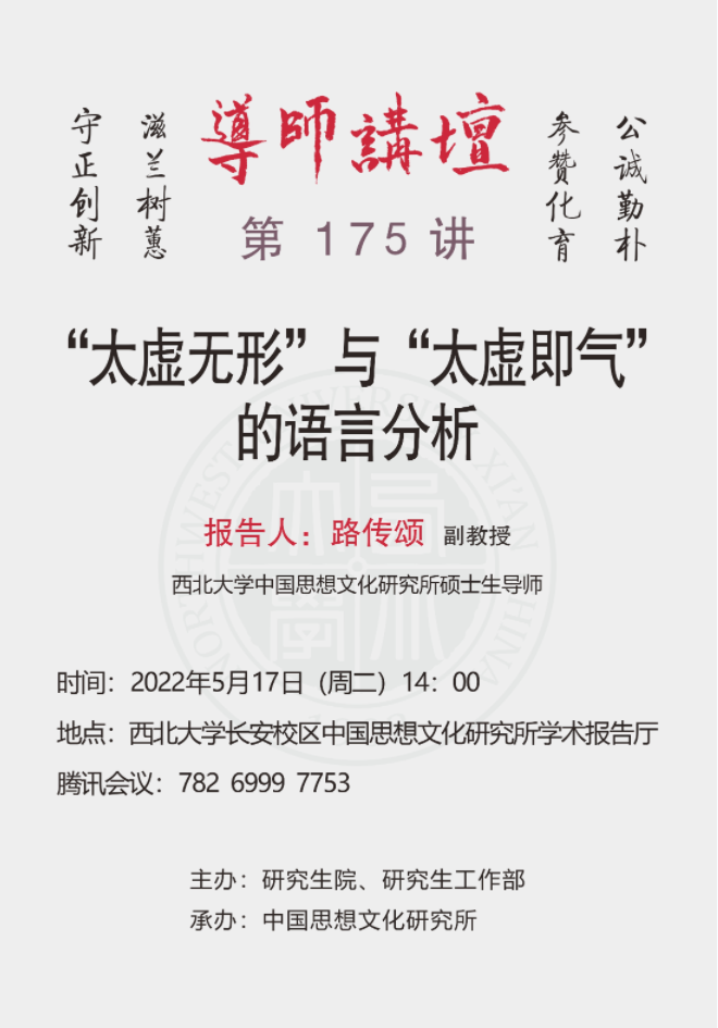 导师讲坛第175讲:“太虚无形”与“太虚即气”的语言分析
