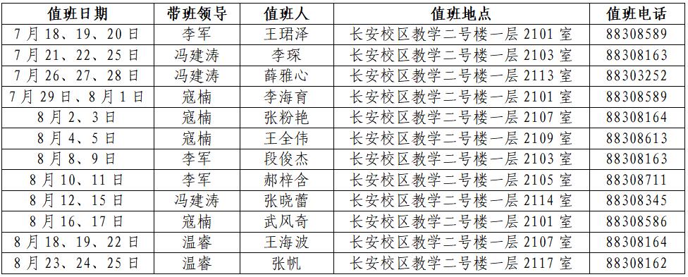 二、暑假值班安排