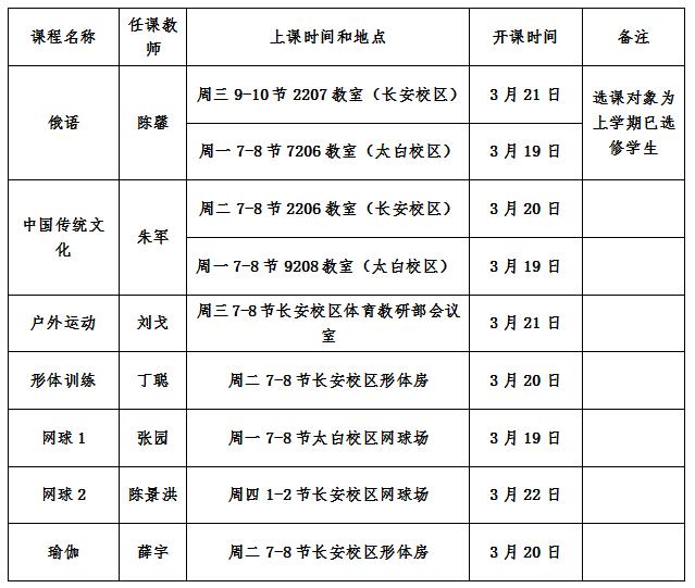2.《中国传统文化》及体育选修课选课方式:有意向选修的研究生第一次课按时到上课地点进行试听,试听结束后如确定选修,在任课教师处登记报名。