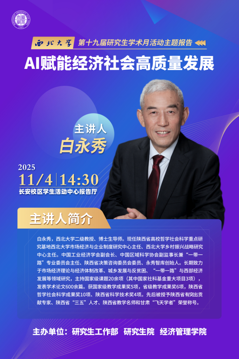 第十九届研究生学术月活动主题报告:AI赋能经济社会高质量发展